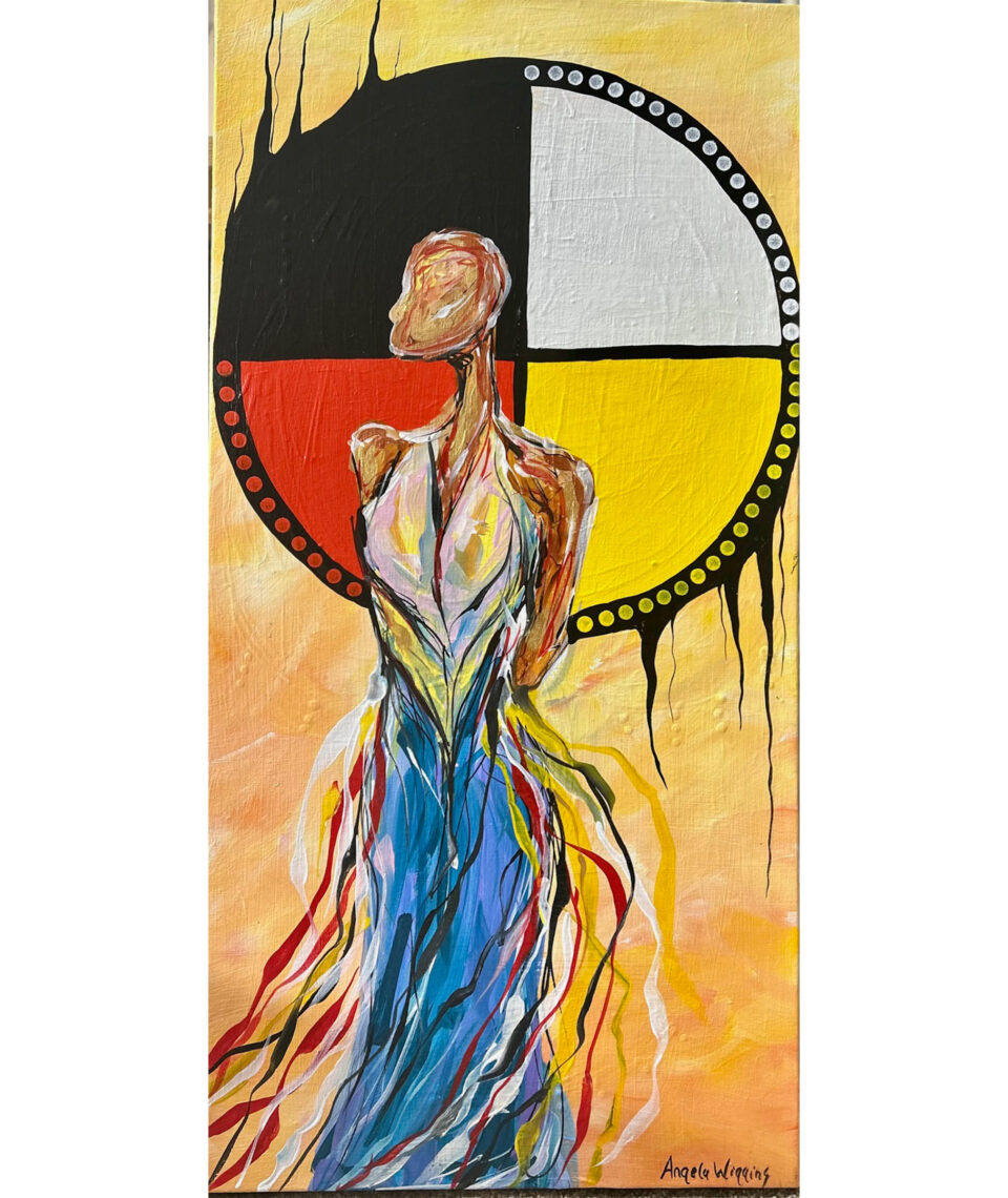 I Am Here – Standing as a proud indigenous woman in front of the traditional medicine wheel