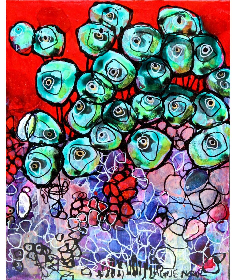 Her artistic interests are largely nature based, Laurie loves to explore the interconnectedness of the natural world. From photorealistic graphite drawings of animals to works featuring insects, flowers, cats and quirky characters. Laurie believes in using her intuition as the driving force of her work. Her paintings are characterized by focus on repetition, organic shapes and fluidly applied colour. Each painting reveals subtle, yet important compositional changes depending on the precise angle at which light hits the surface of the canvas.