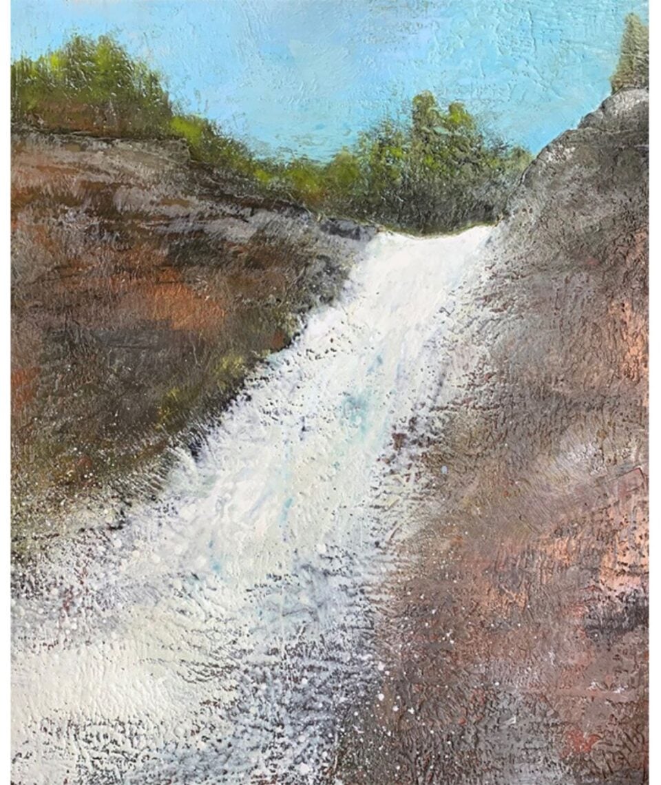 Susan Wallis is a professional encaustic painter based in Picton, Ontario. She obtained a Bachelor of Fine Arts from the University of Toronto and a certificate in Design from Sheridan College, has taught at several universities and art schools throughout her career and is the curator and owner of the Melt Studio and Gallery in Picton. Her work is represented in several galleries throughout Ontario and Alberta. Before becoming an encaustic painter (wax and oil), Susan painted with acrylics but was unsatisfied by the messiness and long drying times. She loves encaustic painting because of the quick drying time, the vibrancy of colours, and the range of texture. Currently, Susan’s muse is the Canadian landscape and believes that “a painting should depict the act of seeing, not the object being seen.”