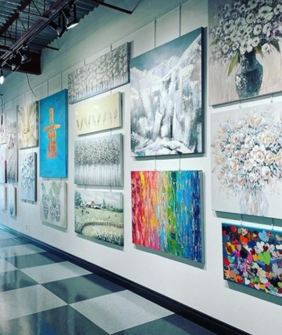 From the beginning, Ringelmann’s vision for the business was to bridge the gap between gallery owner and artist. “Art should be warm and celebratory,” she says, “not stiff and intimidating.” Her retail experience (she is also owner of the Off The Hook clothing boutique) taught her that shopping is a social activity. The design of the gallery reflects that vision, featuring not just art on walls, but also a bistro with eclectic fare, comfortable seating, and upbeat music. And when a second lockdown closed indoor dining, the team converted the bistro to an enormous temporary studio, spawning a series of public workshops that are now a permanent fixture.